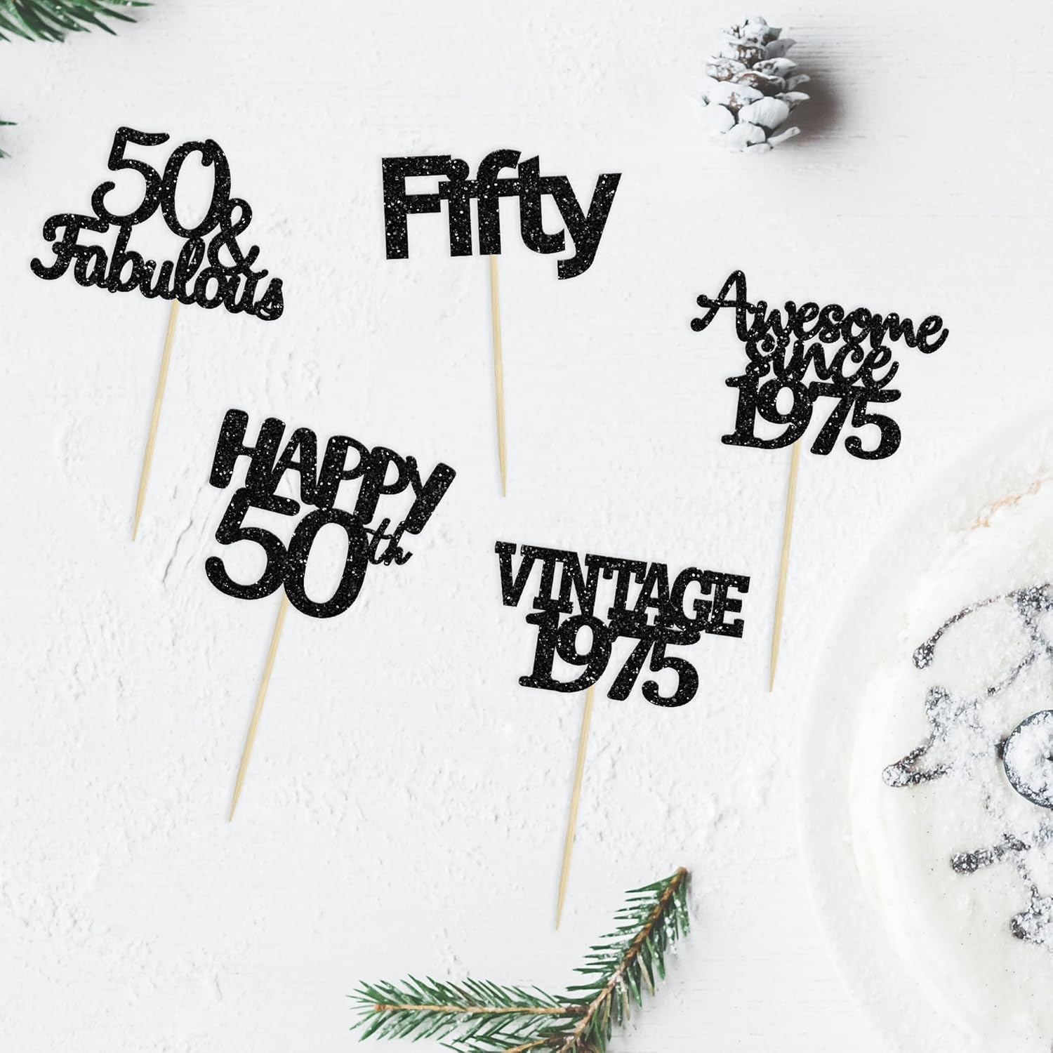- ♡Premium Material: These glitter Vintage 50th Birthday Cupcake Toppers are made of high quality paper and food-grade toothpick, very safe to put them on cakes, cupcakes, ice cream, fruits, pie, dessert, cheese or any dish and food appetizer you want to decorate.