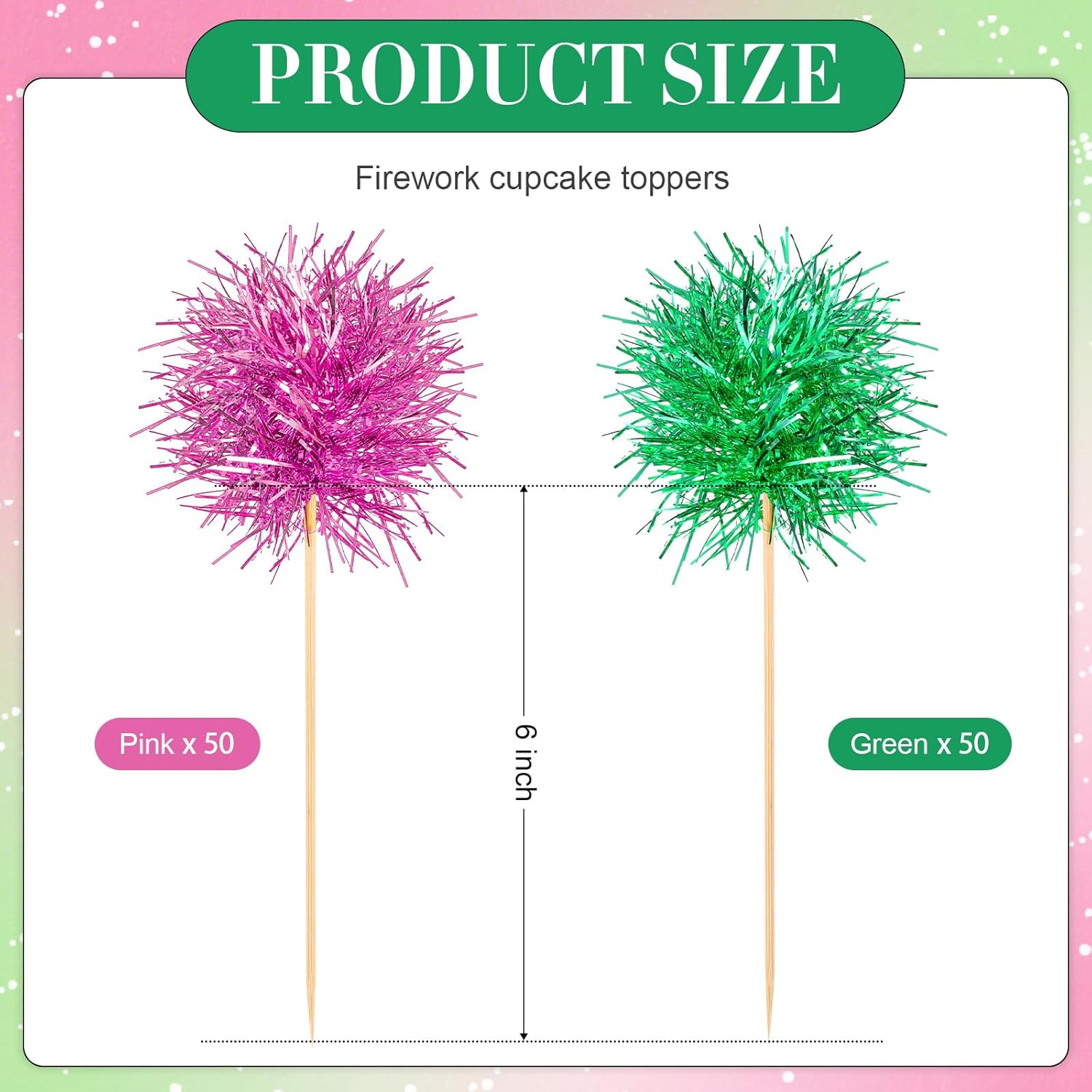 - Large quantity: the package includes 100 pieces of firework tinsel picks, sufficient quantity and various colors to meet your needs on cake decorations