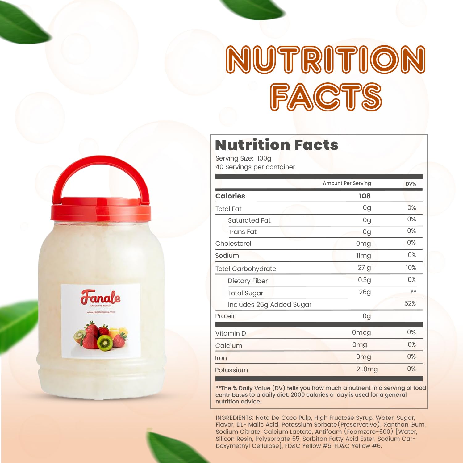 - ๐๐ฐ๐๐๐ญ ๐๐ง๐ ๐๐ฑ๐จ๐ญ๐ข๐ ๐ ๐ฅ๐๐ฏ๐จ๐ซ: Each Fanale coconut jelly boba tea variety is infused with sweet and exotic flavors that complement a range of recipes. This nata de coco jelly topping includes strawberry, lychee, blueberry, mango, sakura, green apple, coconut, Konjac, and coffee flavors, adding a distinct and delightful twist to your creations.