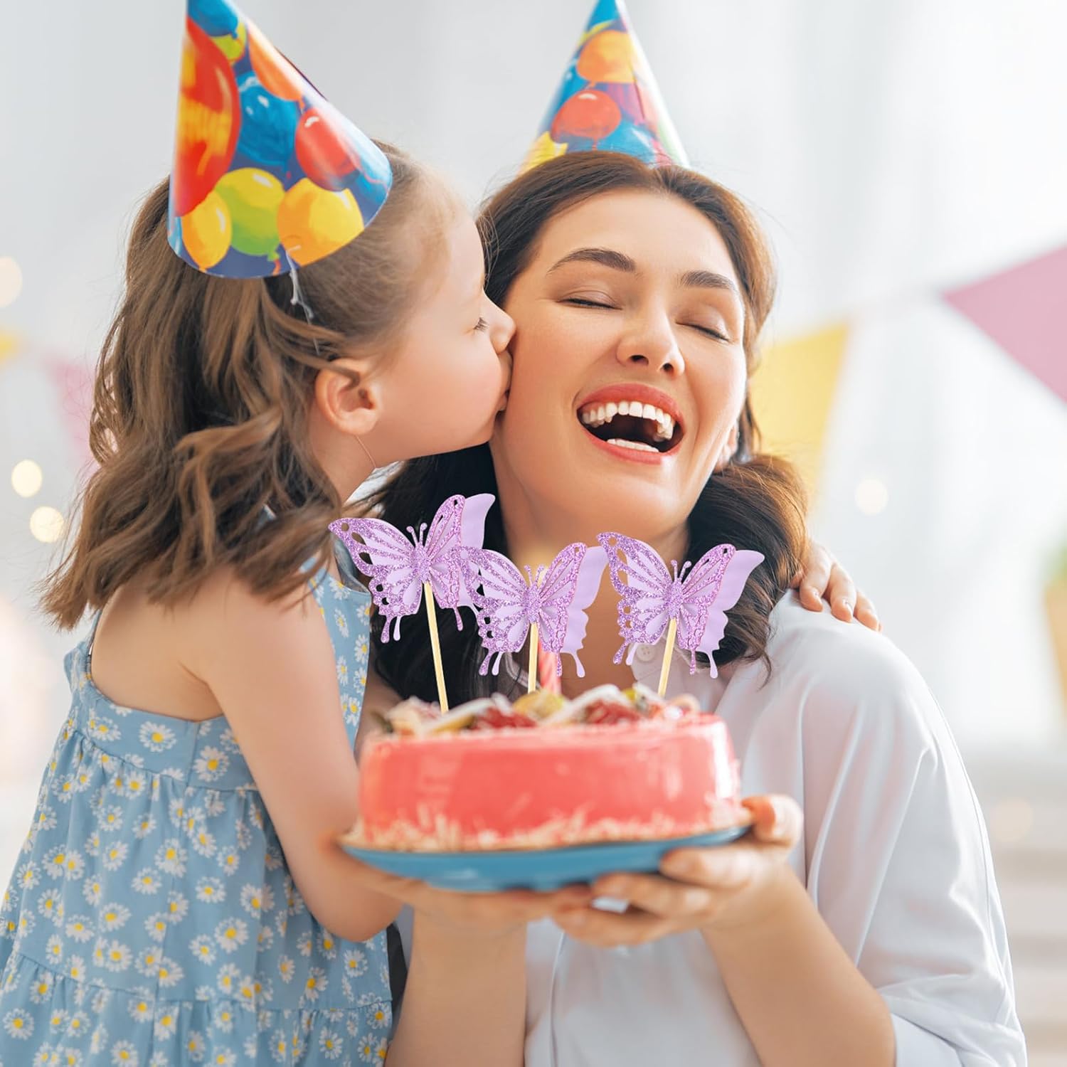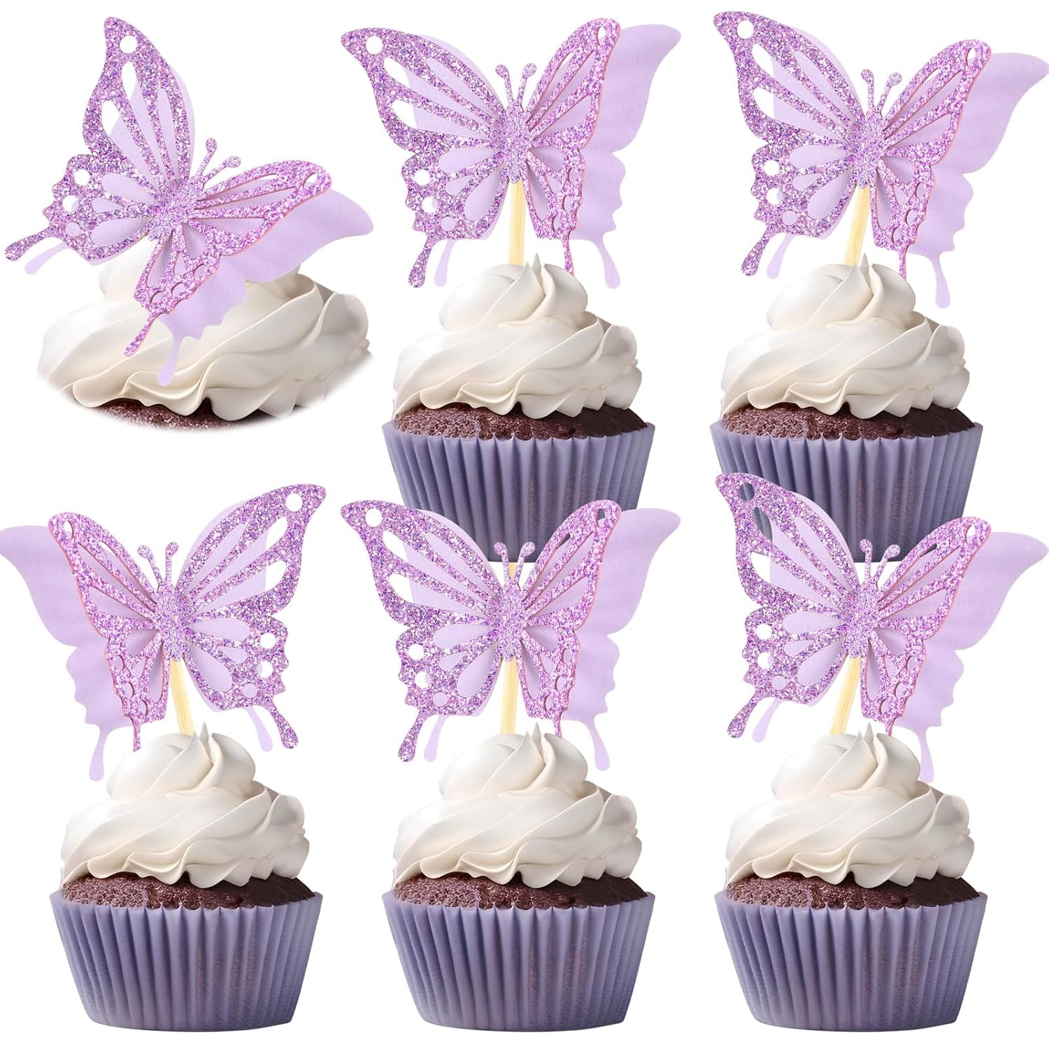 Chinco 48 Pcs Butterfly Cupcake Toppers Assembled Double Layer Cupcake Topper 3D Glitter Cake Topper Butterfly Cocktail Pick Decoration for Baby Shower Birthday Wedding(Glitter Purple,Retro Style)