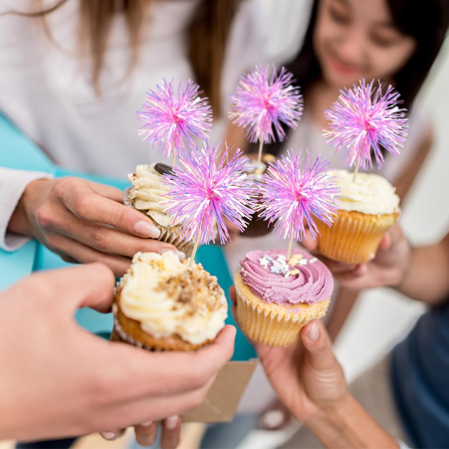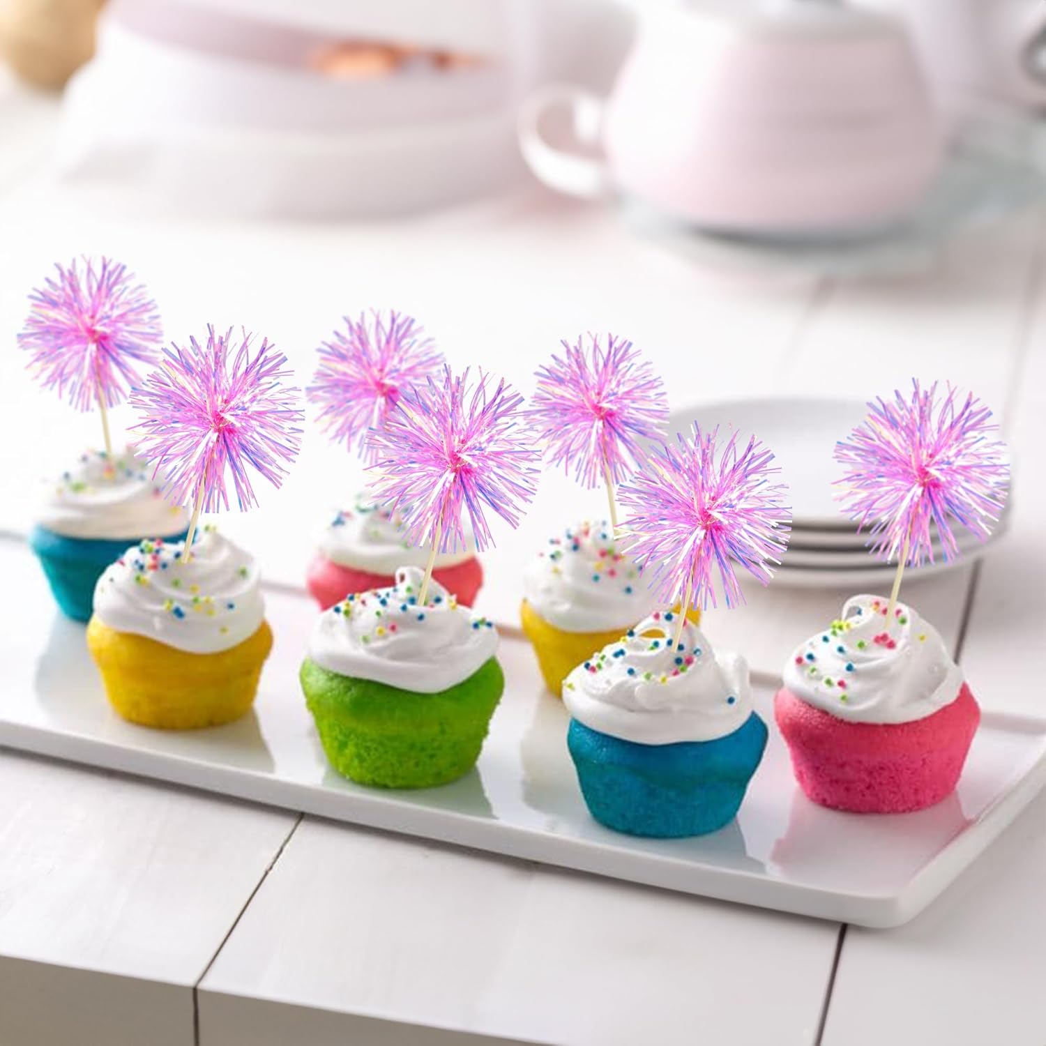 - -These Foil Firework Cupcake Toppers are so cute and good for birthday theme party cake decorations. They can make your cupcake more attractive and bring the fun to your party. You can also apply them for ice cream, fruits, cookies and other desserts.