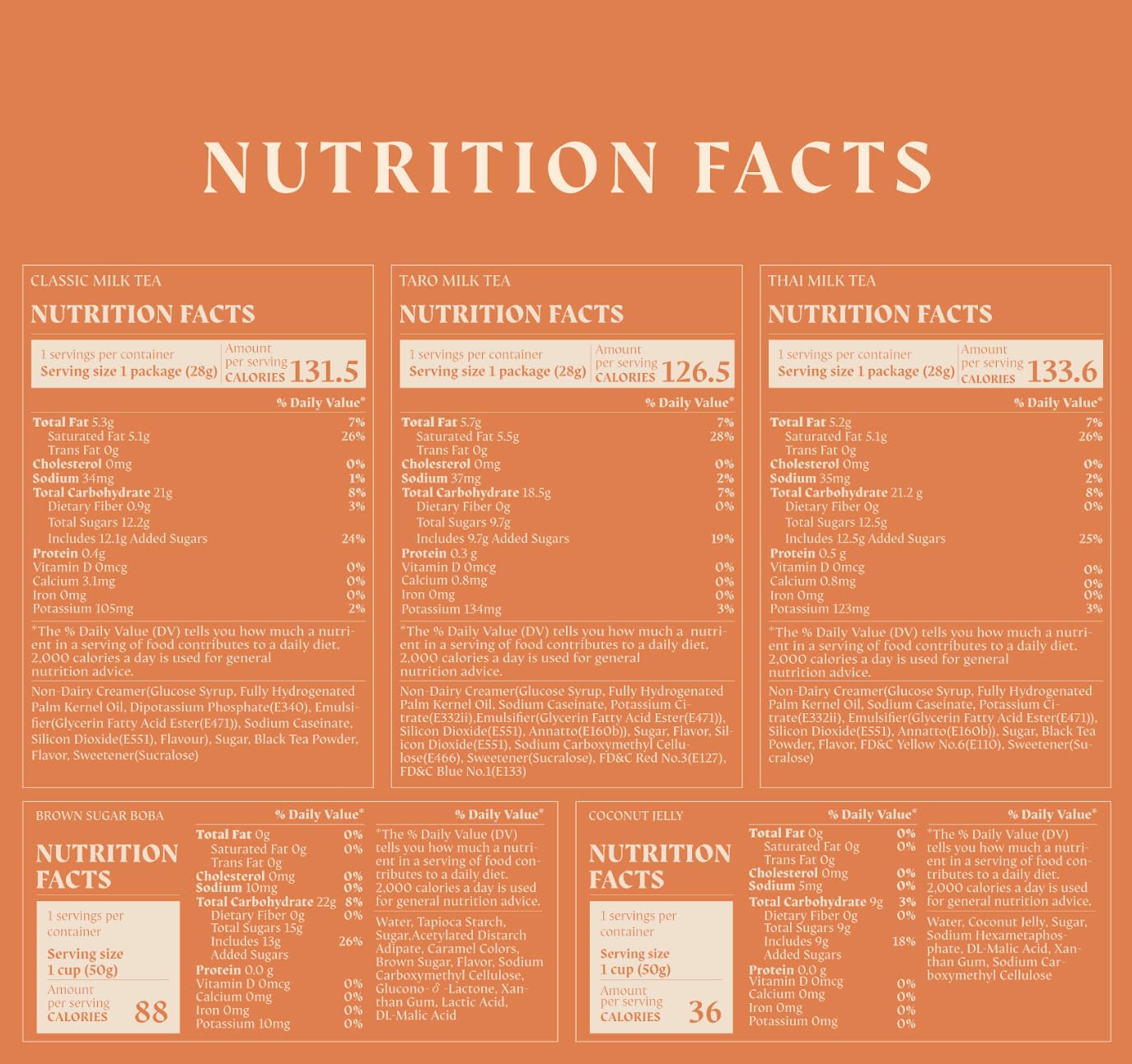 - Flavor : Authentic Milk Tea, Taro Milk Tea, Thai Tea