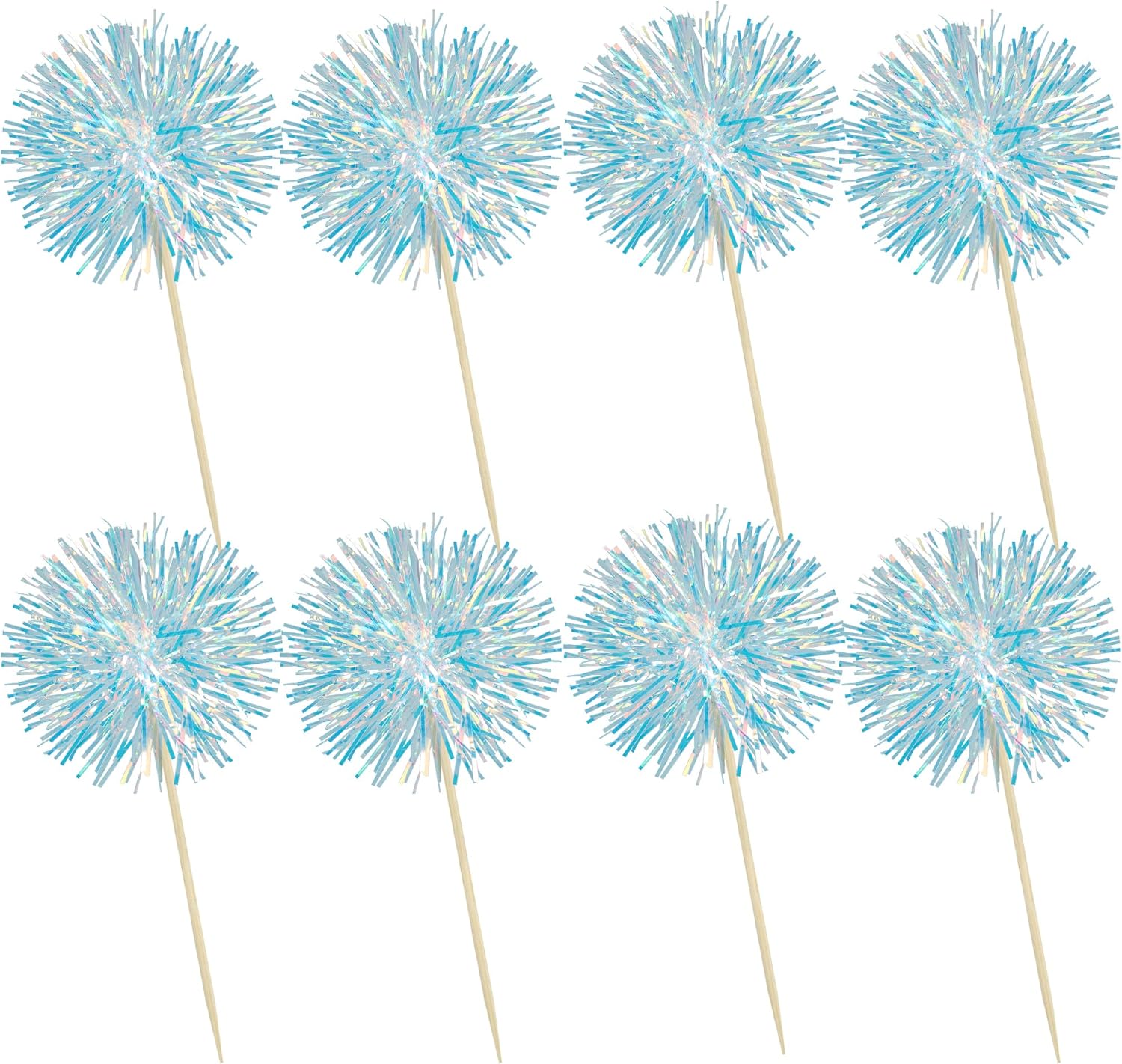 Ephlyn 30Pcs Foil Firework Cupcake Toppers Party Birthday Cake Toppers Supplies Sparkle Tinsel Cocktail Fruit Toothpick for Birthday Wedding Graduation Party Blue