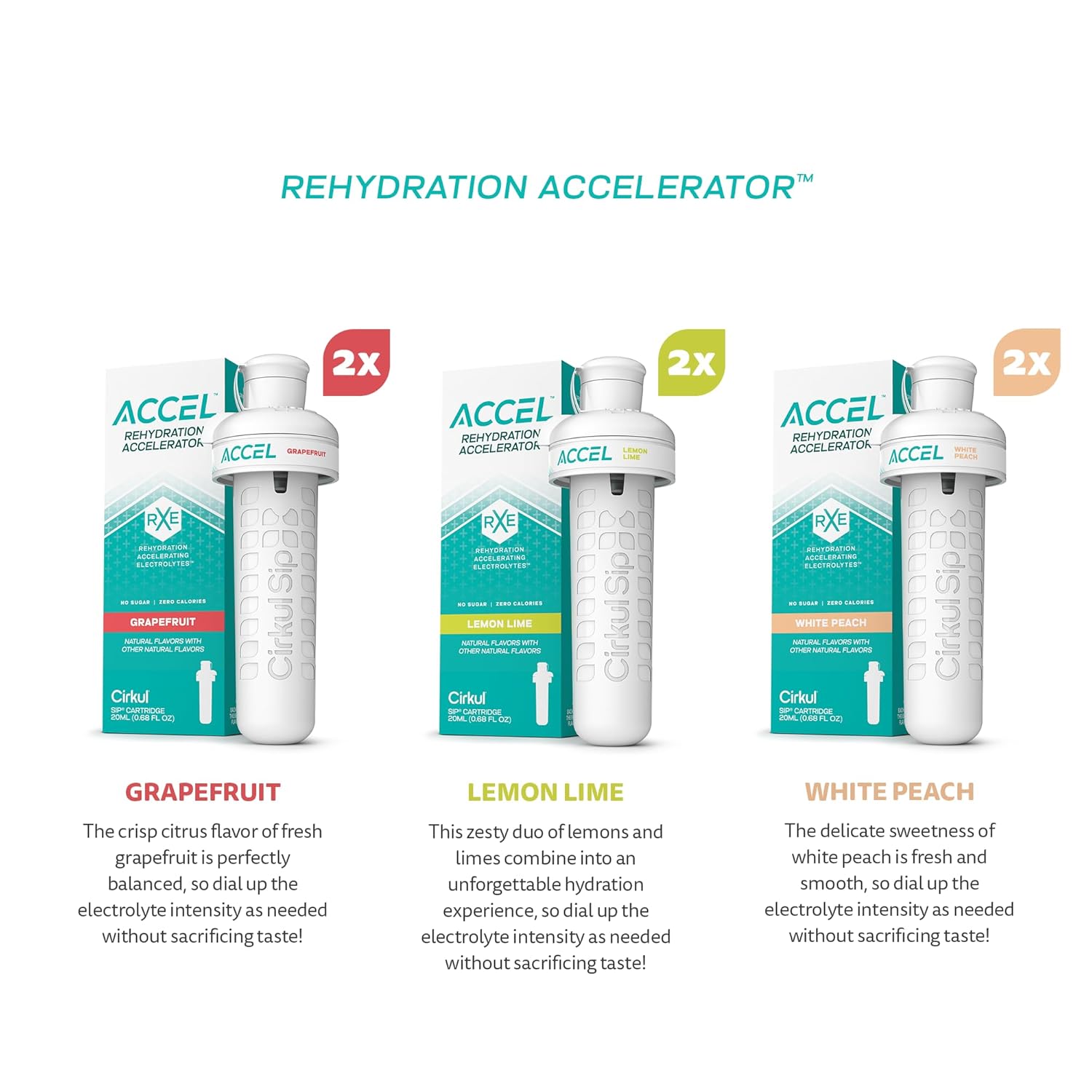 Cirkul Accel Flavor Cartridge Variety Pack with Electrolytes, 6-Pack (2 Grapefruit, 2 Lemon Lime, 2 White Peach), No Sugar, Zero Calorie Drink Mix
