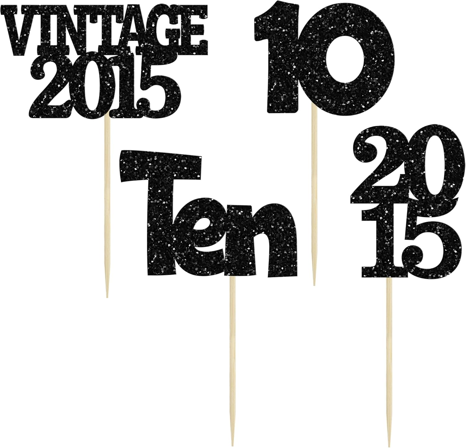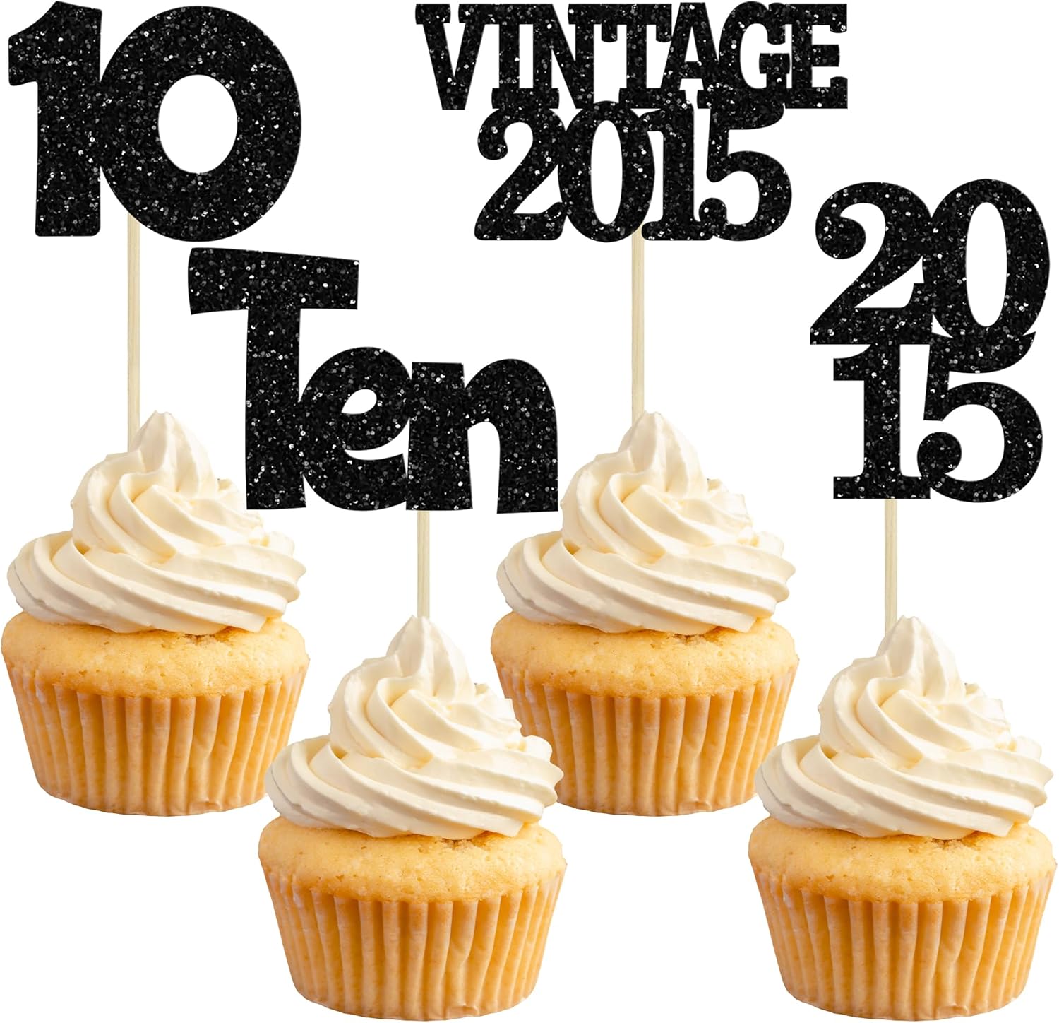 Gyufise 24Pcs 10th Birthday Cupcake Toppers Glitter Ten Vintage 2015 Double Digits 10 Cupcake Picks Hello 10 Years Birthday Cake Decorations for Happy 10th Anniversary Party Supplies Black