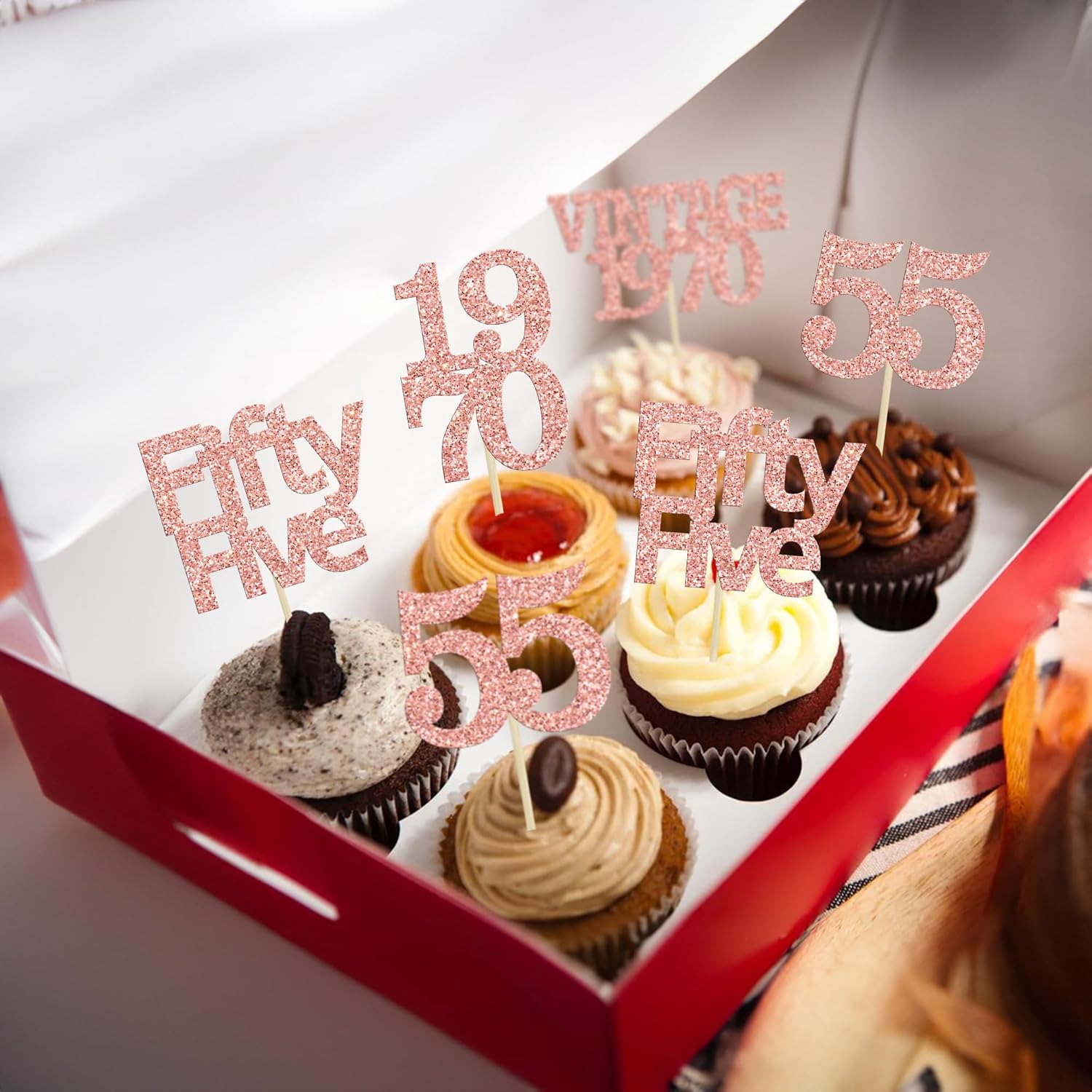 - Premium Material: These 55th Birthday Cupcake Toppers are made of high quality 300 gram card stock and food-grade toothpick, very safe to put them on cakes, cupcakes, ice cream, fruits, pie, dessert, cheese or any dish and food appetizer you want to decorate Valentine theme party decorations.