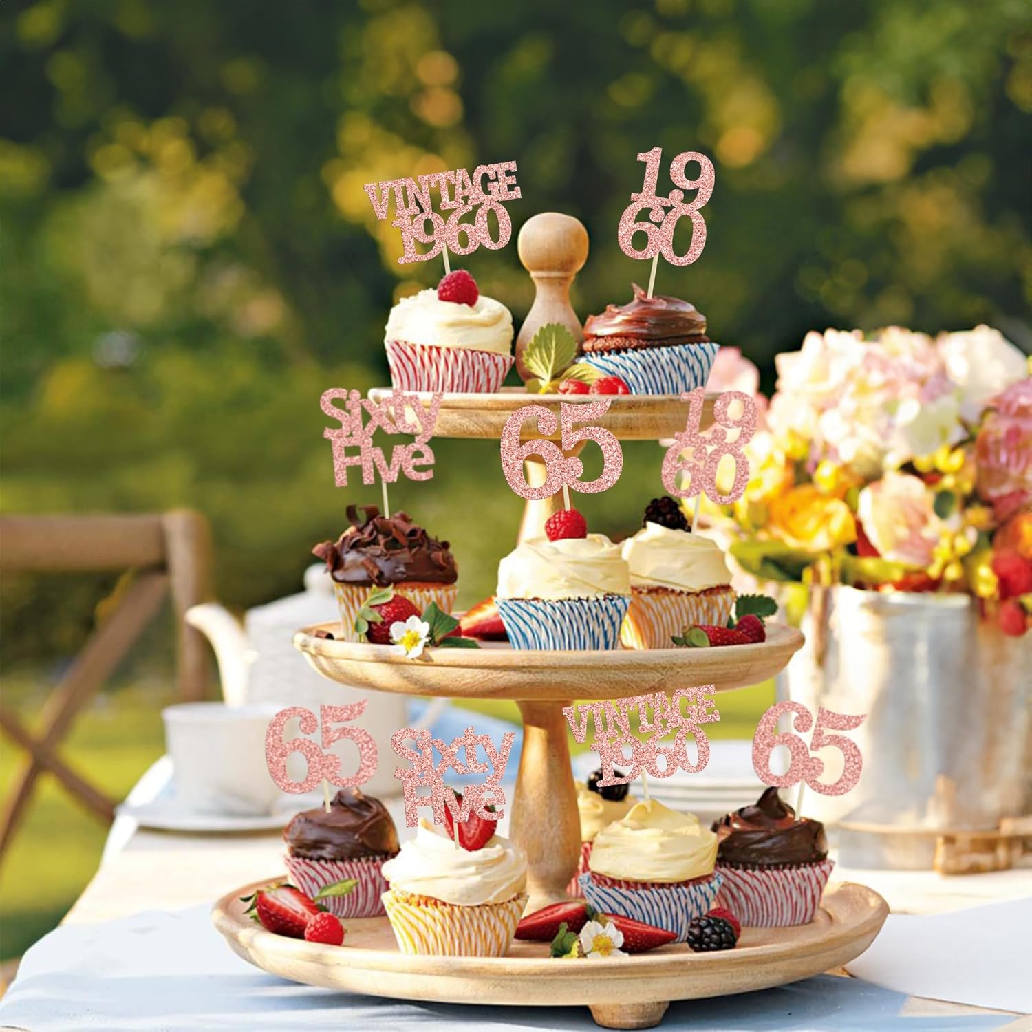 - Package included: 24Pcs 65th Birthday Cupcake Toppers. Comes with assembled, so you can insert into your cake directly, which make your cake more interesting.
