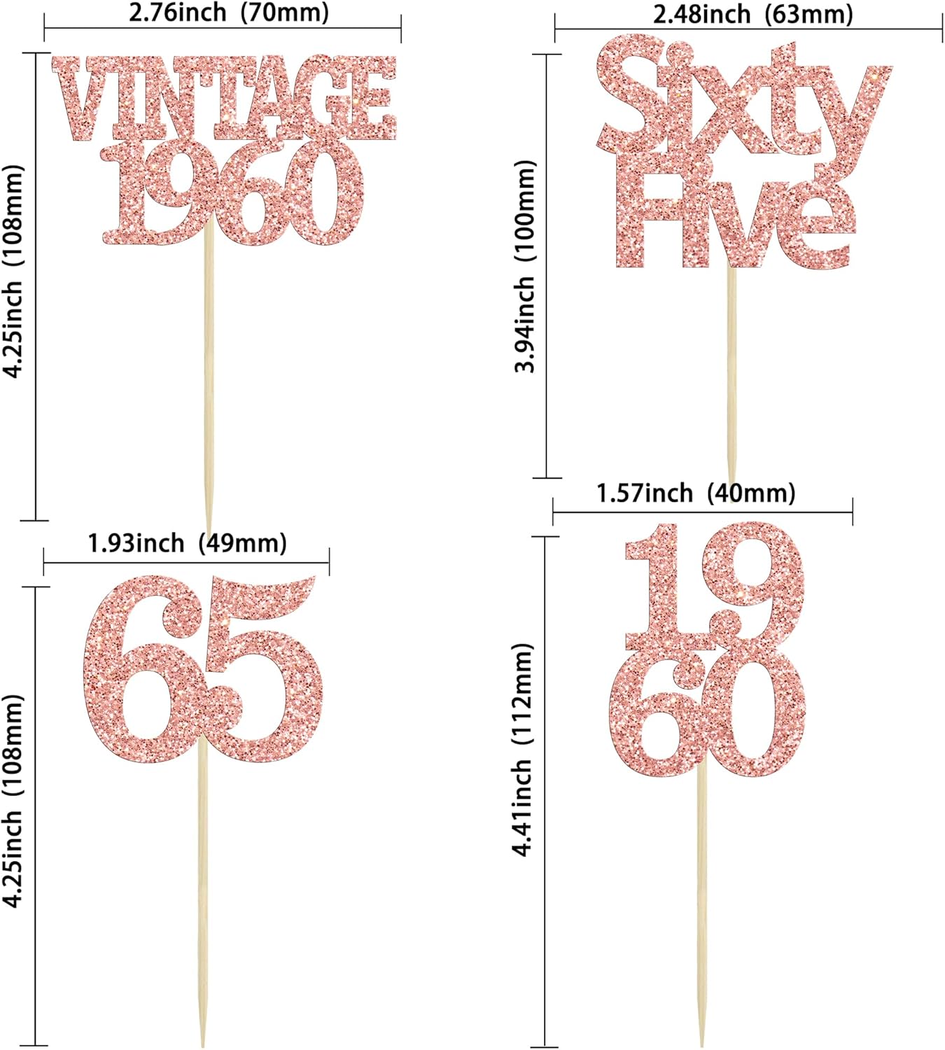 - Premium Material: These 65th Birthday Cupcake Toppers are made of high quality 300 gram card stock and food-grade toothpick, very safe to put them on cakes, cupcakes, ice cream, fruits, pie, dessert, cheese or any dish and food appetizer you want to decorate Valentine theme party decorations.