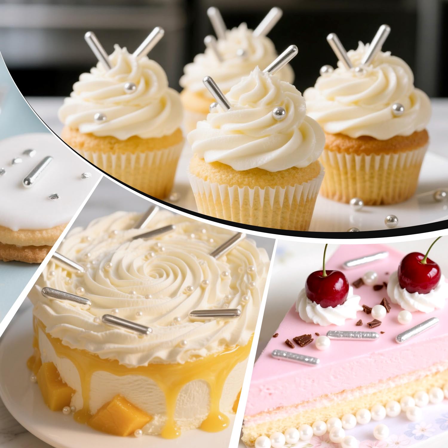 - These Silver Rods Sprinkles have the amazing ability to turn your cakes, cupcakes, cookies, ice cream and other desserts into perfection. Let's use these sprinkles to make every dessert a delightful baking creation. Silver Rods Sprinkles ensure sweet pleasures and unforgettable memories at every gathering.