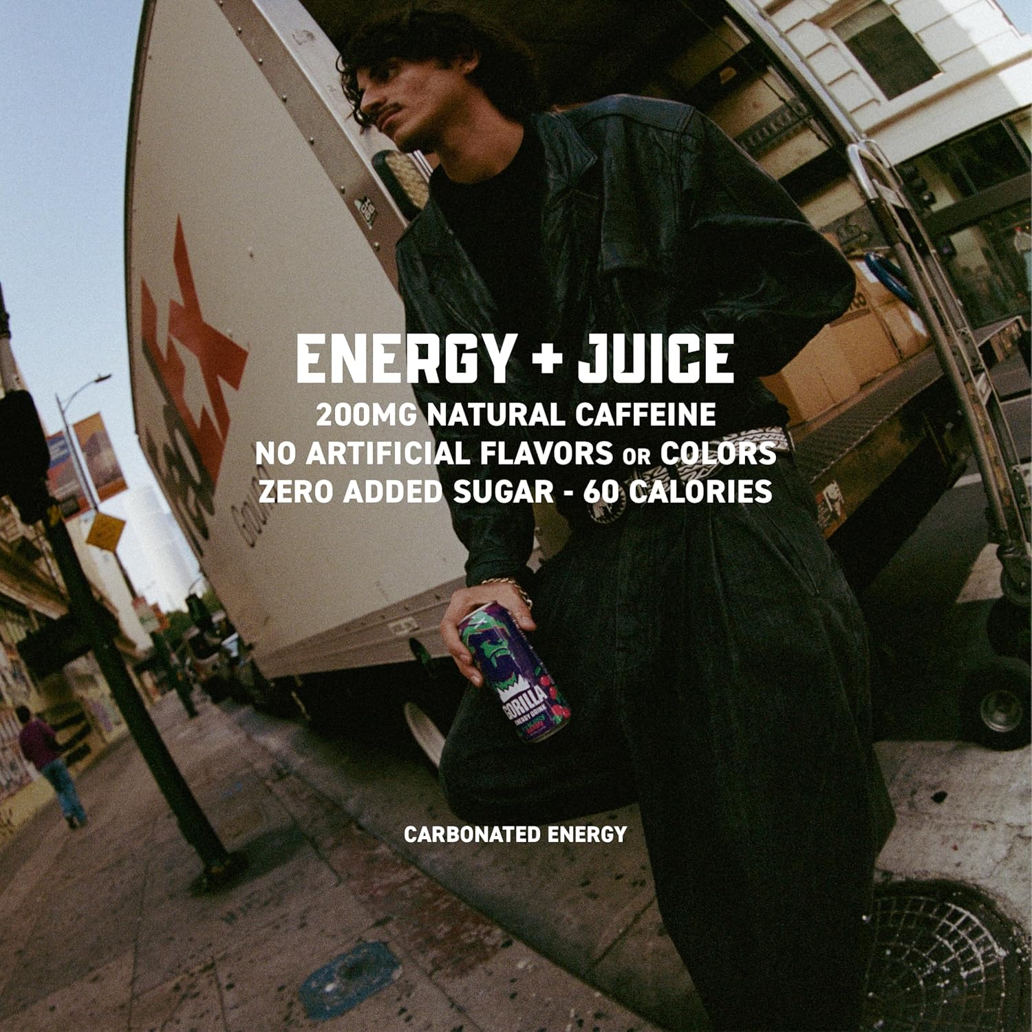 - REAL FRUIT JUICE SQUEEZED, THEN CONCENTRATED: Each sip bursts with natural flavors, using real fruit juice that’s squeezed and then concentrated for an authentic taste. With no artificial flavors or colors, clean ingredients, and only 60 calories per can, Gorilla Energy offers a light, refreshing and carbonated way to recharge.