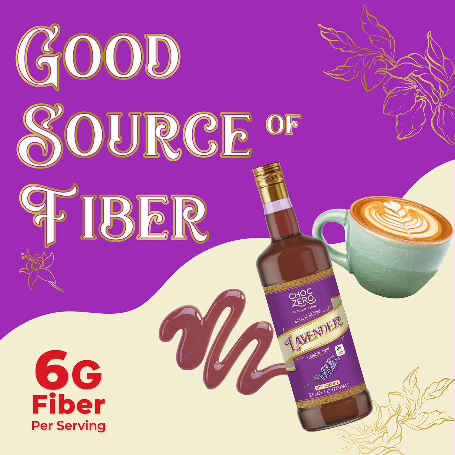 ChocZero Coffee Syrup, Lavender Flavor, Sugar Free Syrup for Drinks, Keto Friendly, 25.4 Fluid Ounces