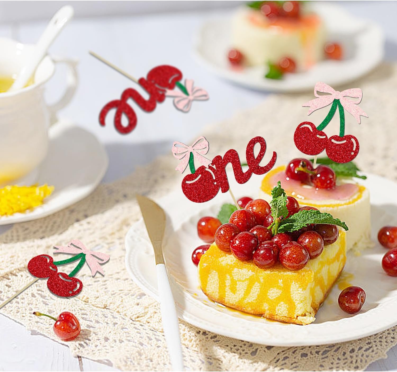 - 【Cherry Cake Topper】:These sparkling and cute cake decorations are excellent accessory for cherry or fruits party. The topper features a unique cherry design with a charming bow, adding extra sparkle and cuteness. These cherry cake toppers will make your cake more attractive and everyone will love it! It's also a great photo prop to make your party more fun!